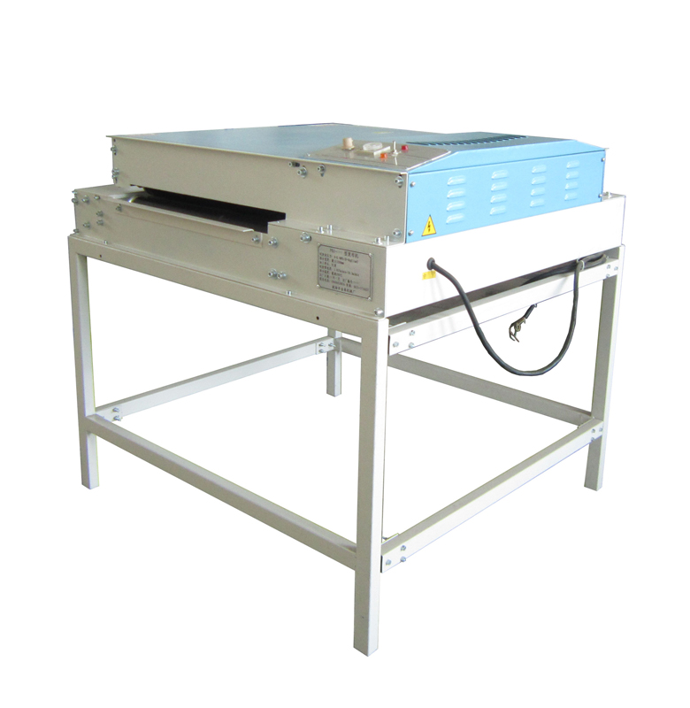 ① 硅膠輥壓力:0-0.15MPa(0-1.5kgf/cm2) ② 溶合寬度:最大500mm ③ 加工料長:任意 ④ 硅膠帶速度:0m/min-5.4m/min無級變速 ⑤ 溶合溫度:最高200℃ 簡介:本機是在裁布工序中,將兩層布交叉粘合的設備,壓力穩定,粘合效果好。不會出現氣泡、脫層等缺陷。